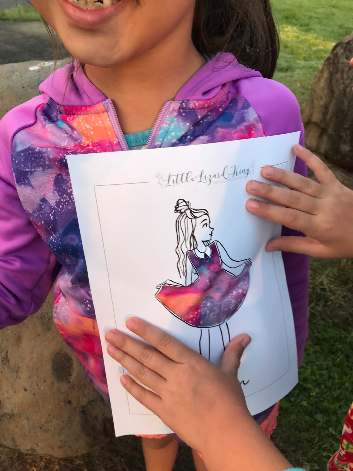 We wanted to do that with our girls as a part of their Outdoor art badge experience but didn’t want to use adult fashion images because we wanted to to girls just like them little K-2nd graders. I belong to the Little Lizard King pattern group on Facebook and knew that they had some coloring pages for little sewists. https://littlelizardking.com/color-me also if you are just learning to sew or an advanced sewist, please also visit their pattern shop at https://littlelizardking.com . I've been using their patterns for my girls as well as for teaching sewing for 9 years. They are a amazing MOM led company, full of other moms sharing their design skills.
